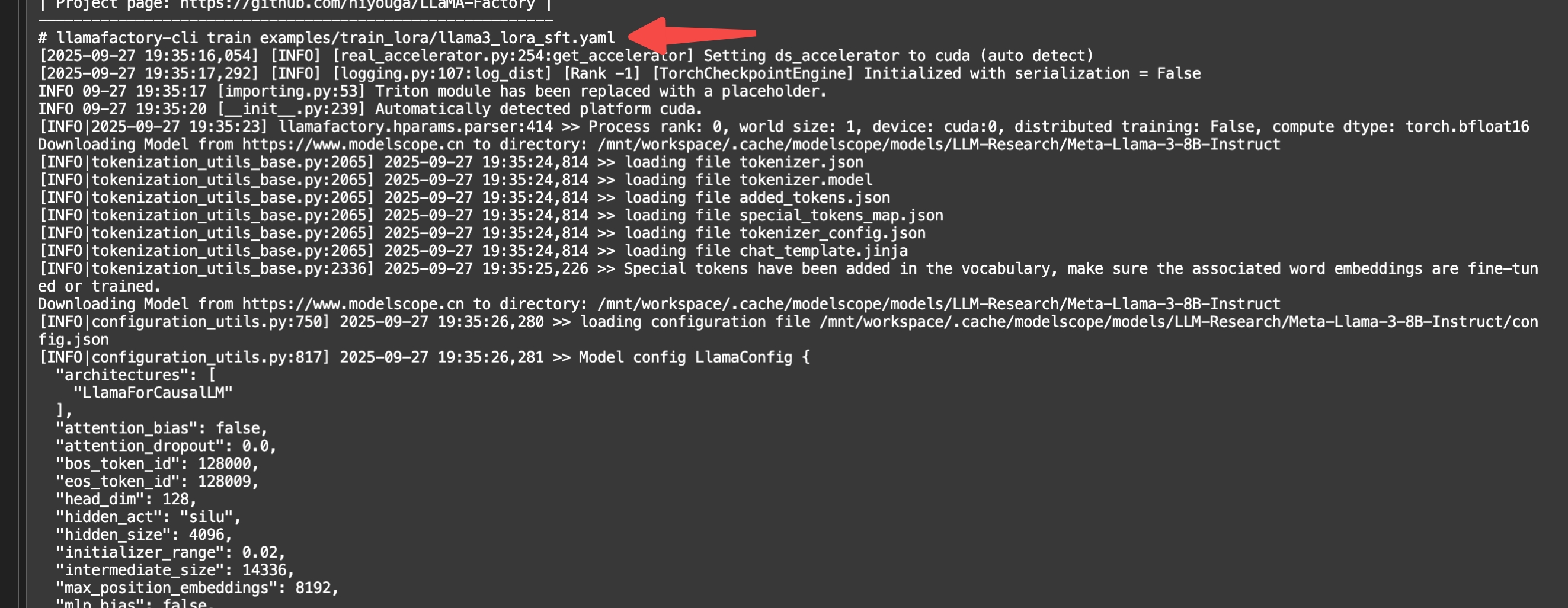 llamafactory-cli train examples/train_lora/llama3_lora_sft.yaml