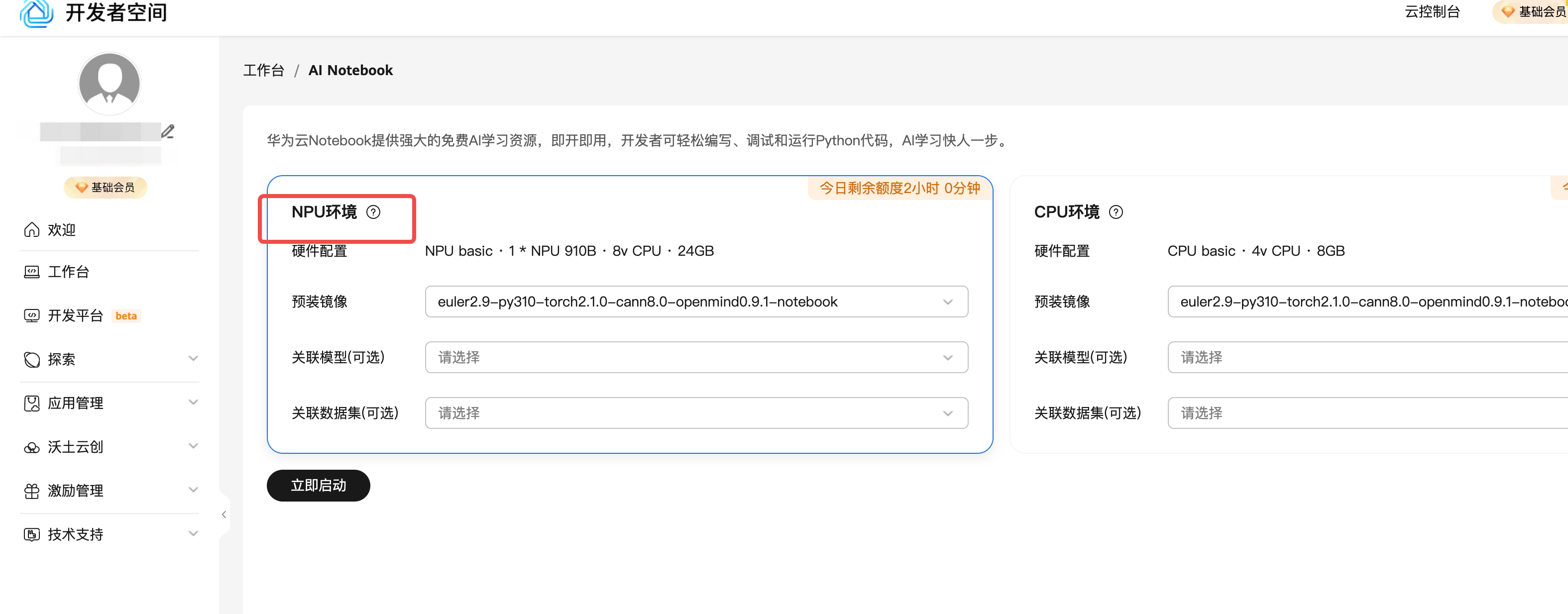 华为云 - 工作台 - AI NOTEBOOK 支持使用NPU 进行训练